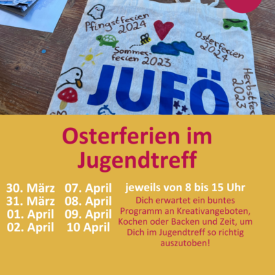 In den Osterferien 2026 wird's bunt und lecker! Euch erwarten coole Kreativwerkstätten, Spiel- und Spaßangebote sowie leckere Koch- und Backangebote.