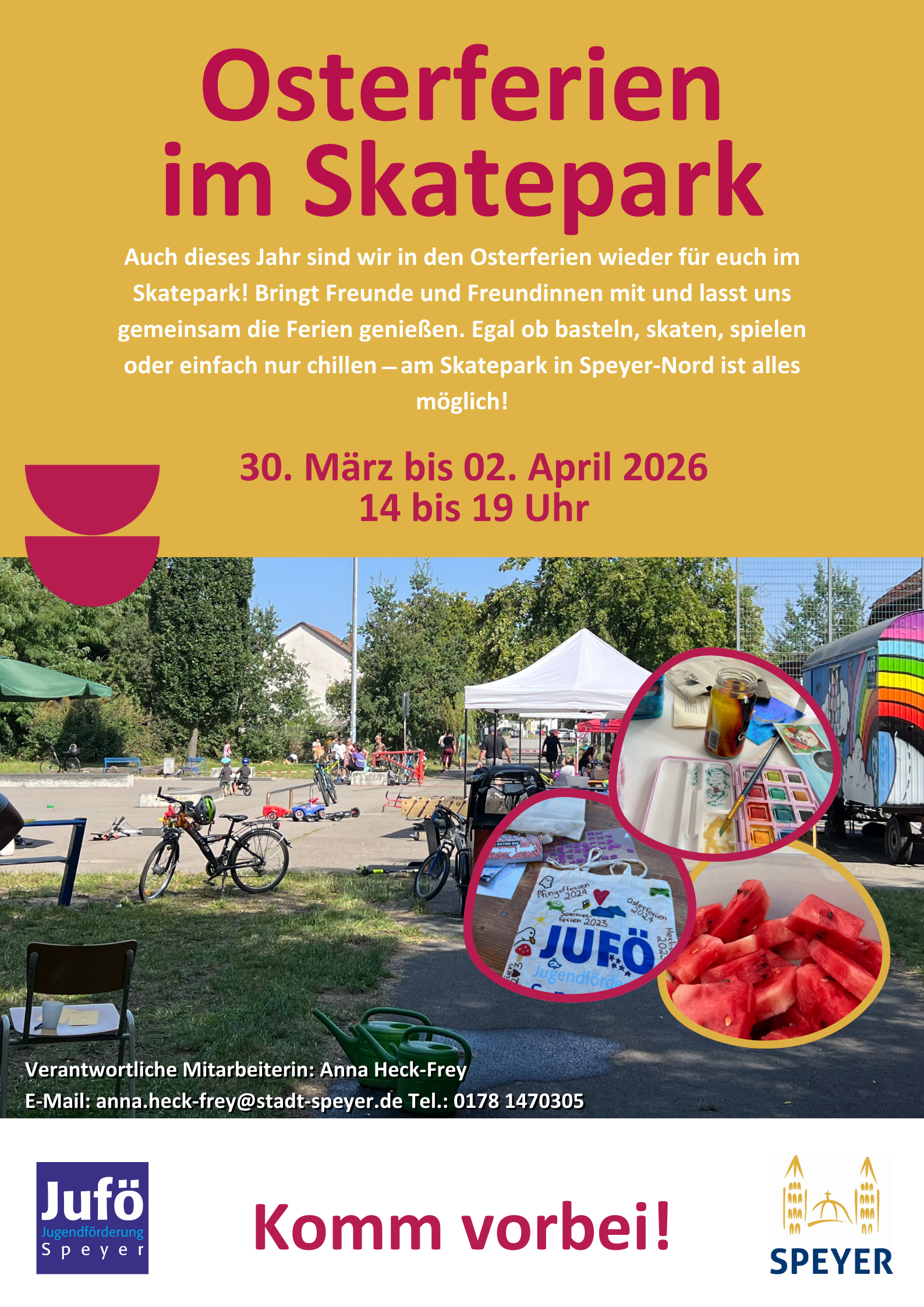 Auch 2026 sind wir in den Osterferien wieder mit Chillmo und Jufömobil im Skatepark in Speyer - Nord für euch vor Ort.