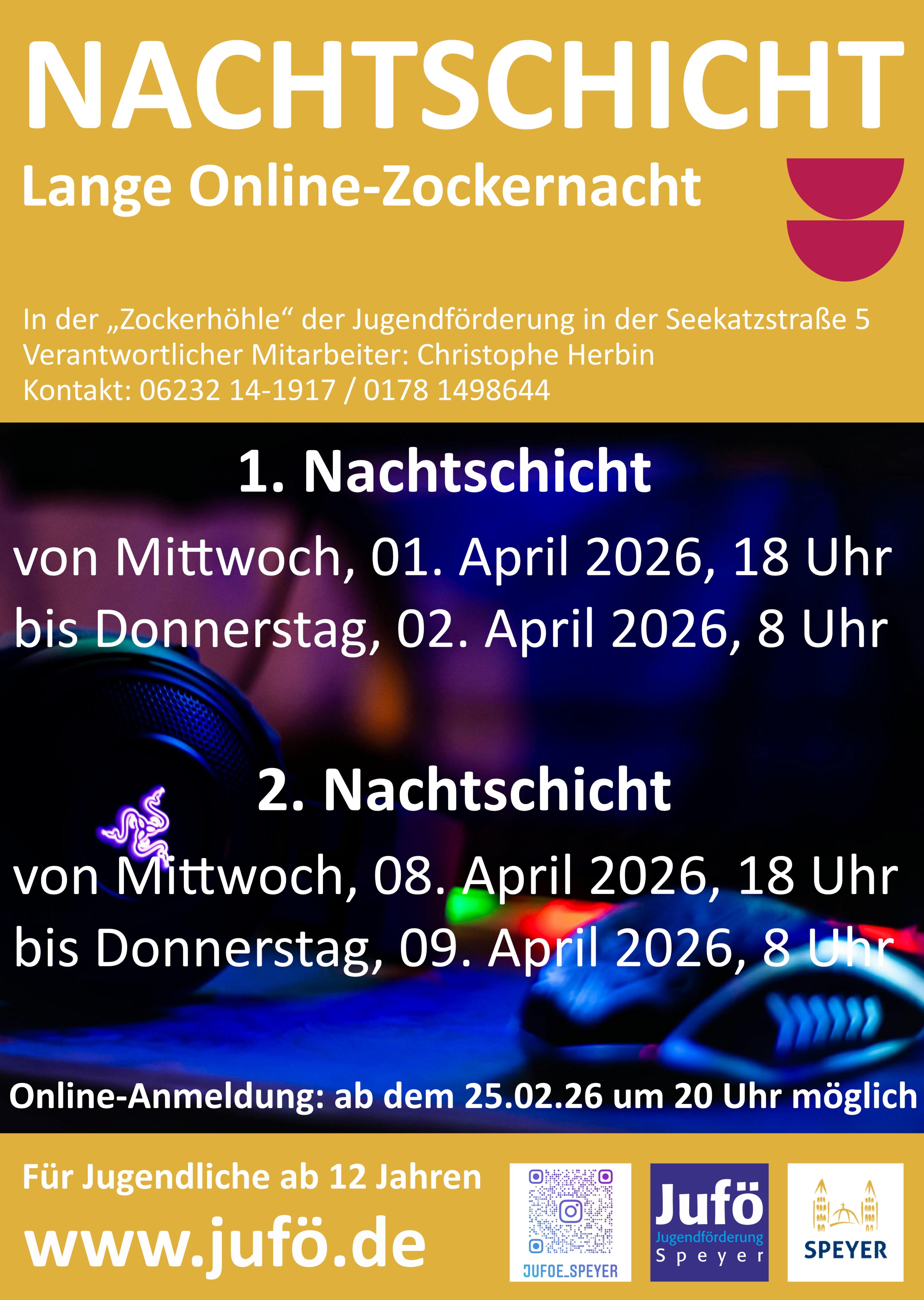 Die Zockernächte bzw. "Nachtschichten" finden immer in den Oster- und Herbstferien 2026 statt.