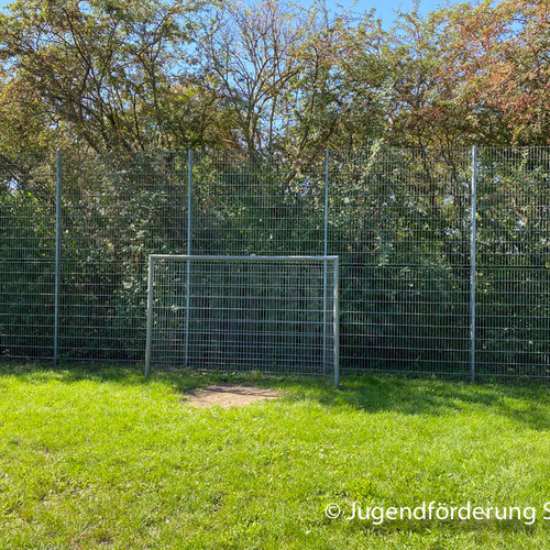 Am Rand des Wohngebietes im "Vogelgesang" liegt der große Bolzplatz am Closweg. Die großen Ballfangzäune hinter den zwei Toren sorgen für ein flüssiges Spiel.