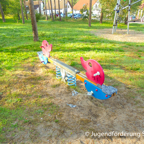 Dieser Spielplatz liegt am Rande des kleinen Wäldchens im Ginsterweg. Im Halbschatten stehen einige einmalige Spielgeräte zur Verfügung.