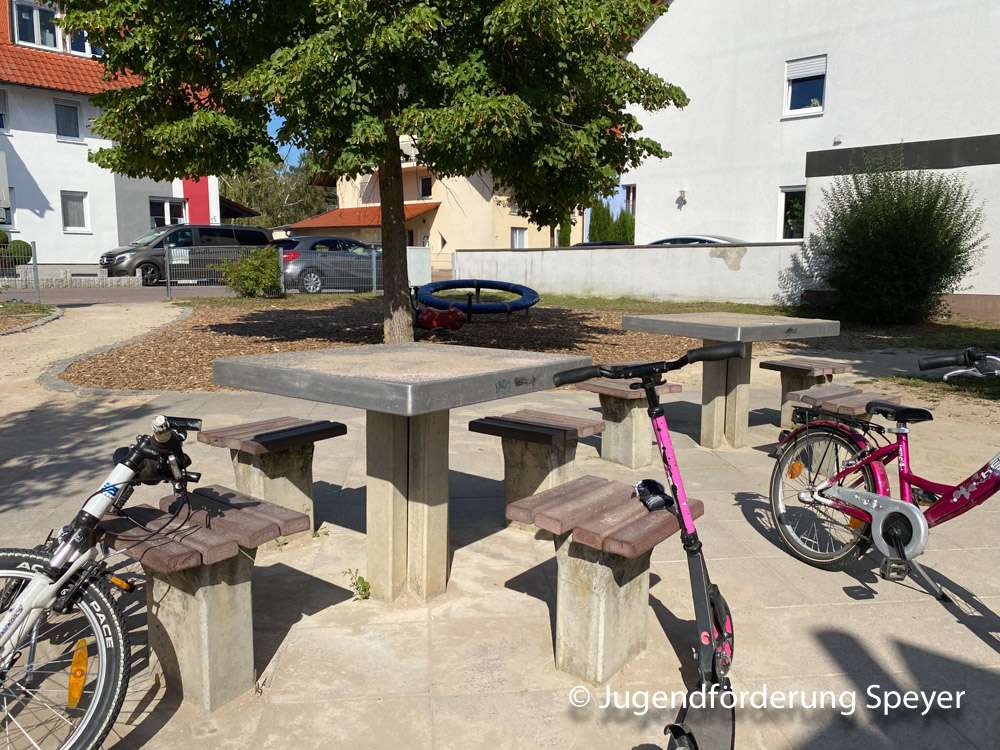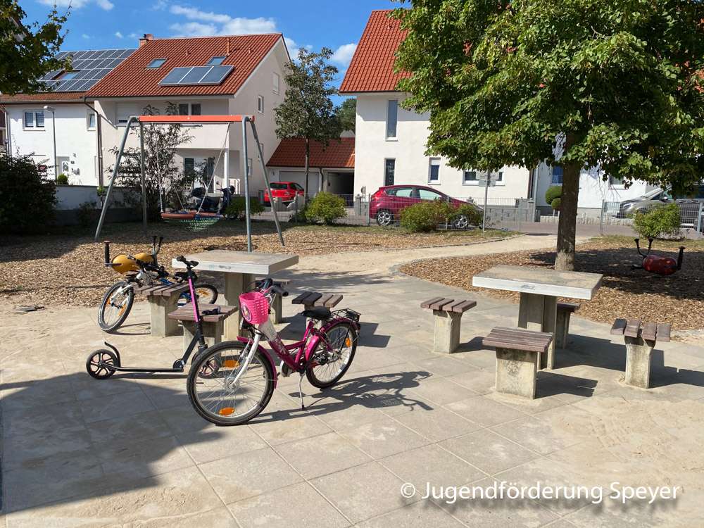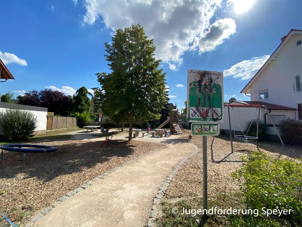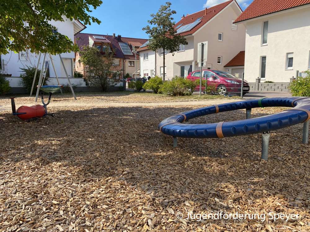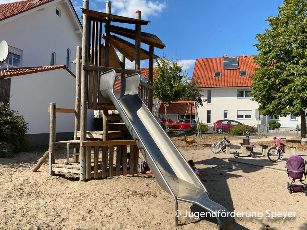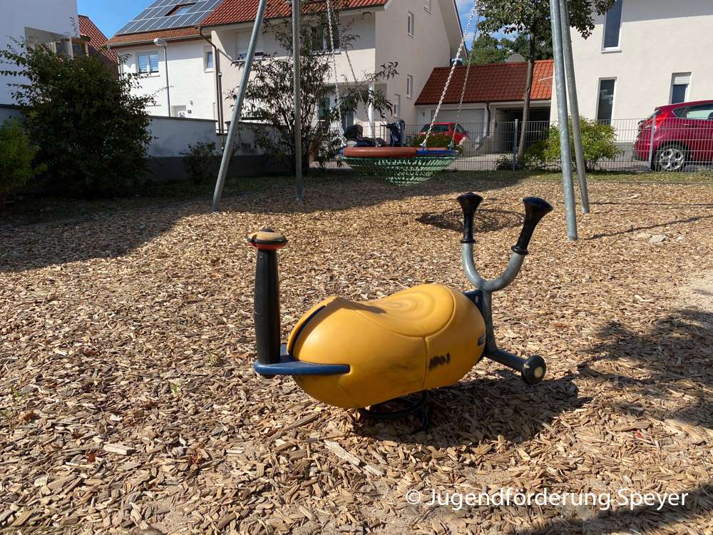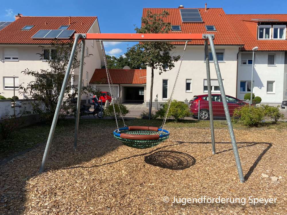 Der ruhige Spielplatz in Speyer-Nord bietet überwiegend Spielmöglichkeiten für Vorschul- und Grundschulkinder an. Die Vogelnestschaukel und die Tischtennisplatte ist auch für ältere Gäste attraktiv.