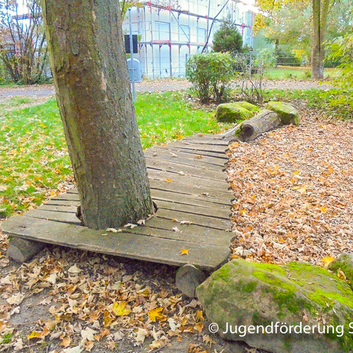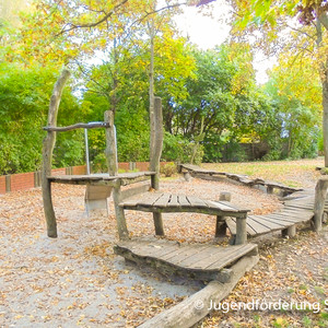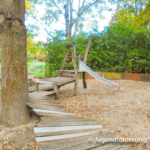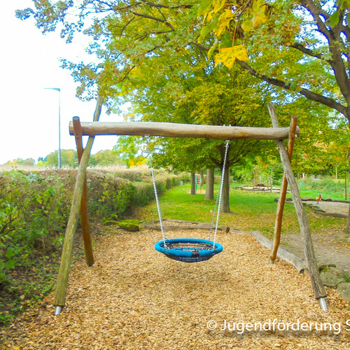 Dieser richtig große Spielplatz bietet am Rand vom Wohngebiet Vogelgesang einen eigenen Bereich für Kleinkinder an. Durch einen kleinen Graben vom Jugendspielplatz getrennt gibt es viele Spielgeräte und Spielmöglichkeiten zu entdecken.