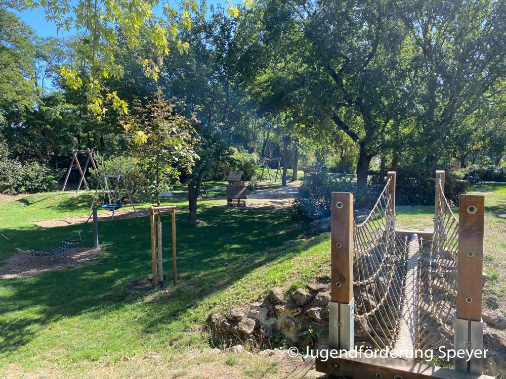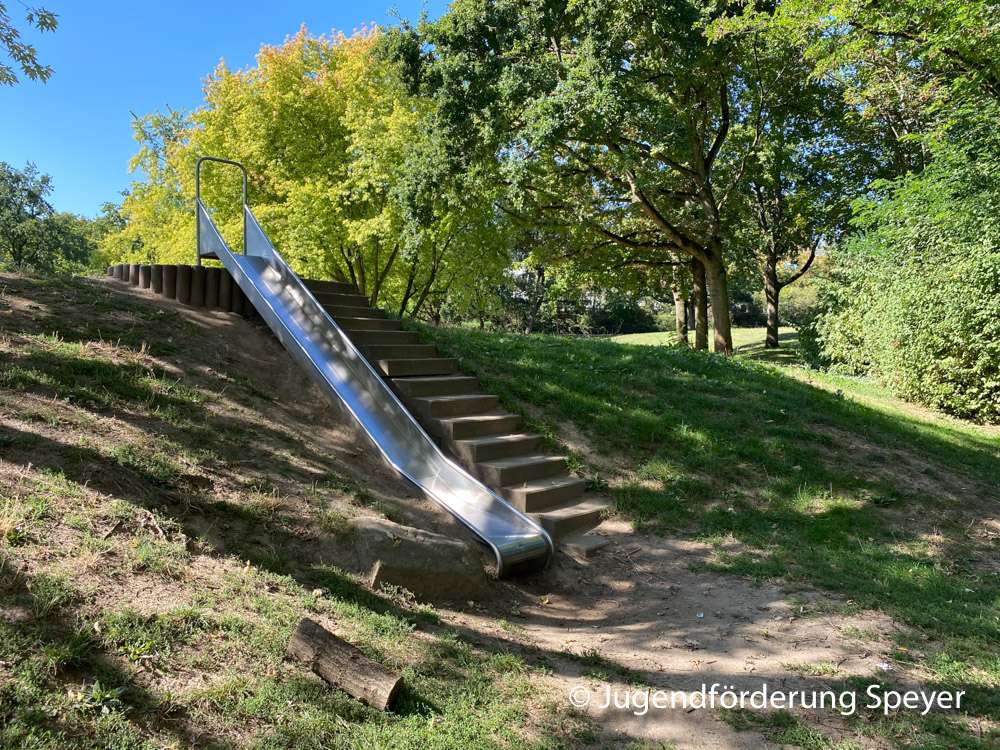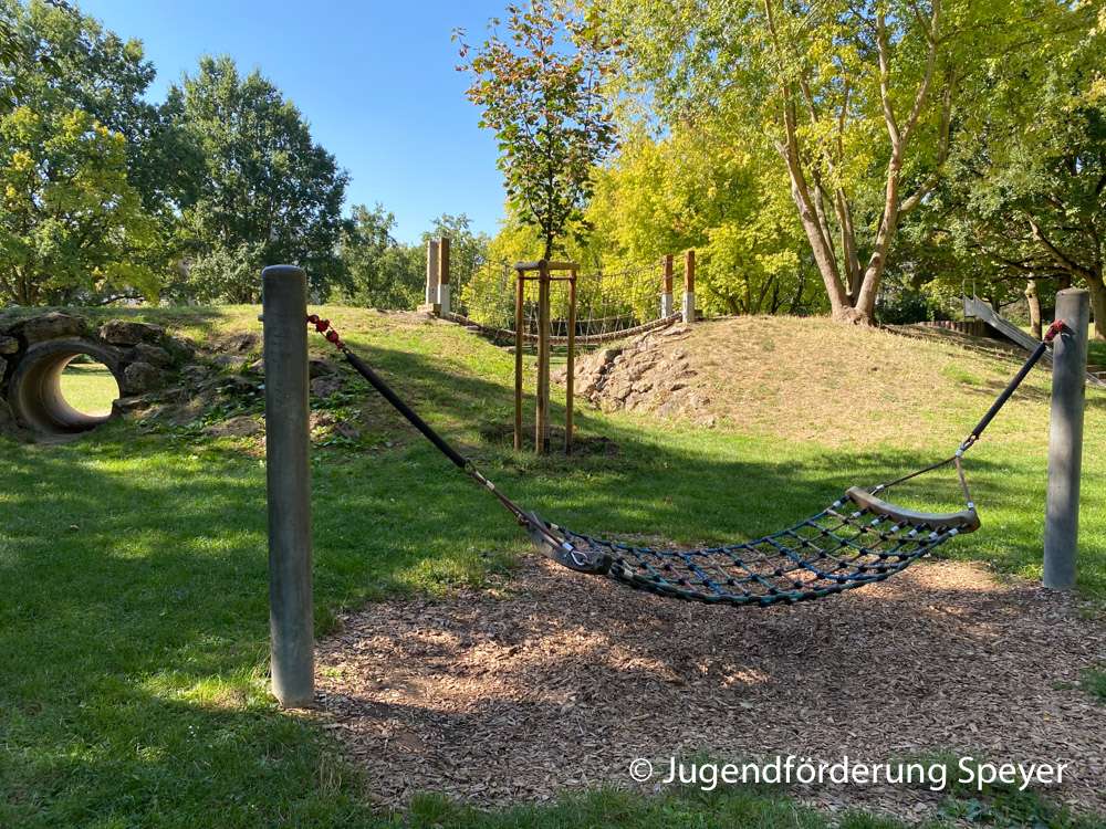 Der größte Spielplatz in Speyer liegt mitten in der Stadt. Für Kleinkinder und Grundschulkinder gibt es einen Wasserspielplatz, Vogelnestschaukel, Sandkasten und viele andere tolle Spielmöglichkeiten. Wenn mal ein paar Zentimeter Schnee in Speyer liegen bleiben, kann dort auch gut am leichten Abhang gerodelt werden.